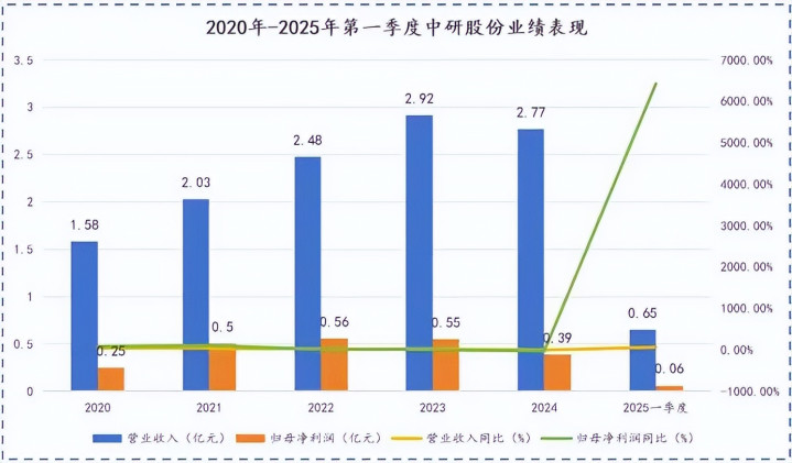 2025年第一季度,中研股份营收突破0.65亿元,较上年同期增长超六成;净利润达0.06亿元,同比增幅更是飙升至64倍。若单看营收和净利润的皆备值,与A股阛阓上那些动辄数十亿营收的巨头比拟,中研股份大致显得有些“不起眼”,致使难以踏进“第一梯队”。可若论及盈利增长的爆发力,64倍的涨幅足以让阛阓回避。这么的惊东说念主鼎新背后,藏着一套值得深挖的买卖逻辑。